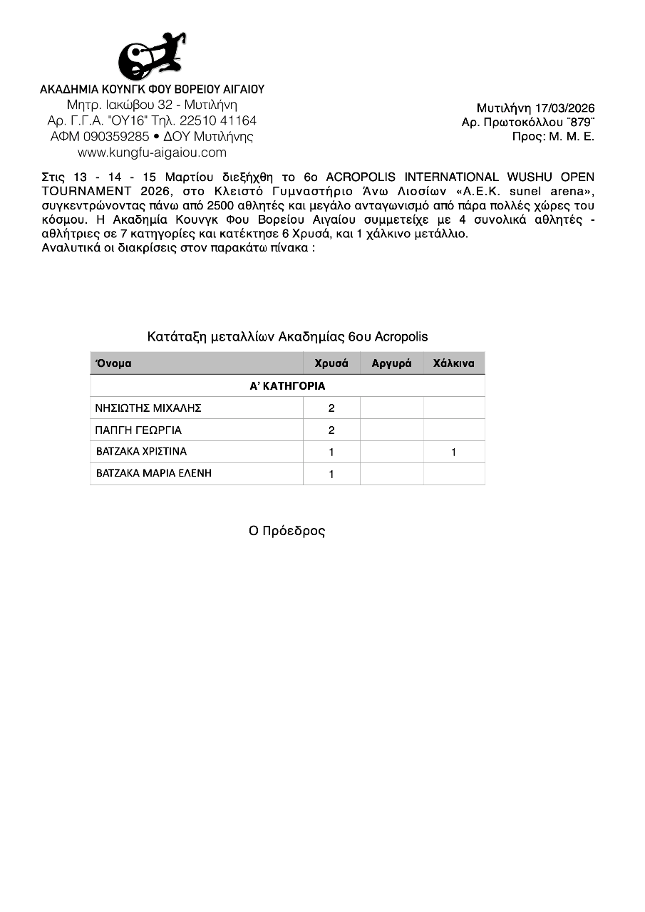 Λογ. Πειραιώς Ακαδημίας Κουνγκ Φου Βορείου Αιγαίου